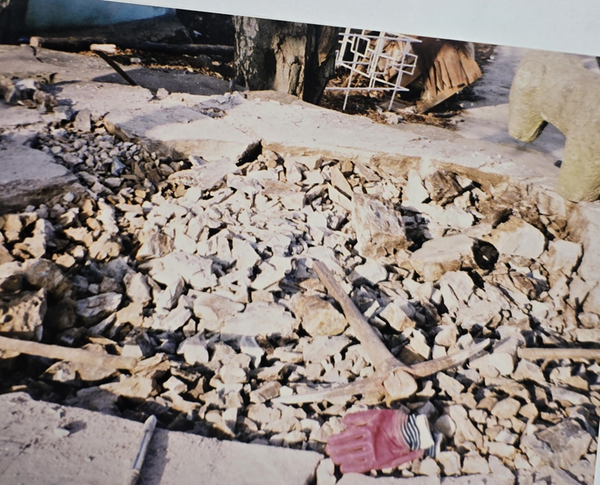 돌담을 조심스럽게 해체하고,