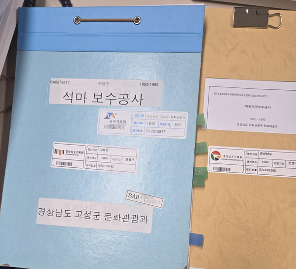 [「석마보수공사」 (고성군 문화관광과, 1992, 경상남도기록원 소장)]